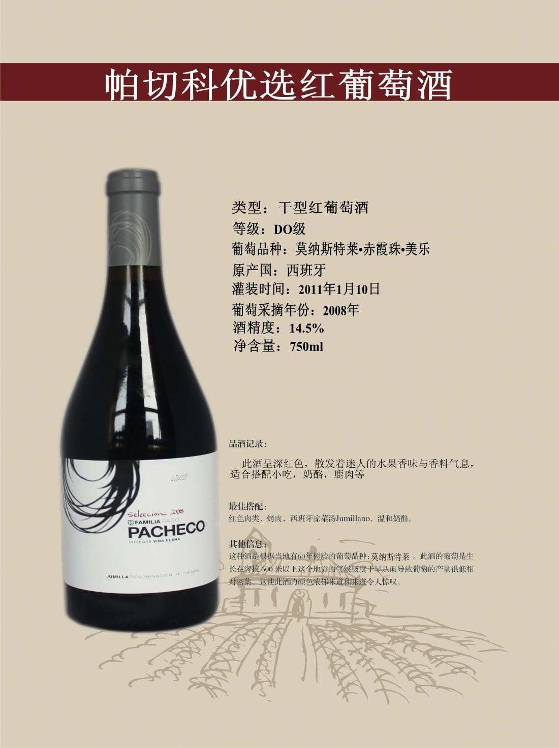 此酒呈深红色,散发着没人的水果香味与香料气息,适合搭配小吃,乳酪,鹿肉等