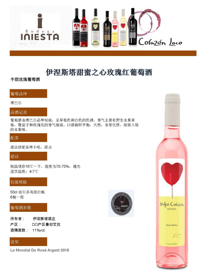 伊涅斯塔甜蜜之心玫瑰红葡萄酒