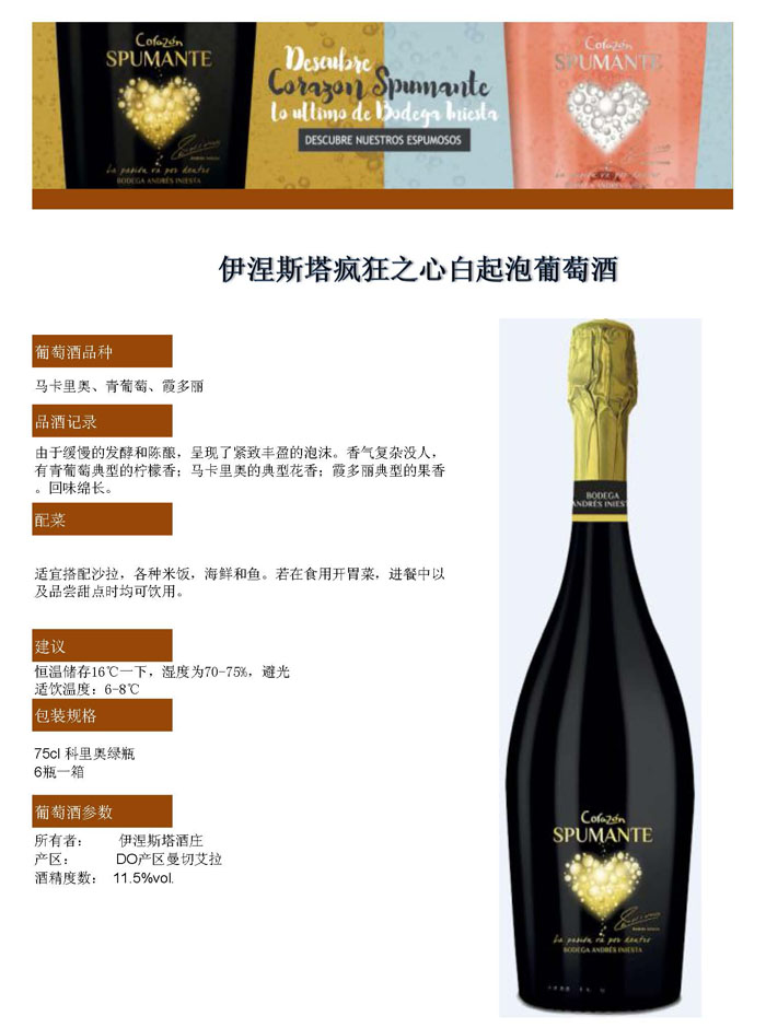 伊涅斯塔疯狂之心白起泡葡萄酒